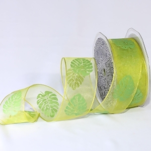 Impart a whimsical and a unique look to your abode using these light green ribbon that can be situated anywhere in your room for an inspirational look. This ideal ribbon with green tree print will keep your house with a dramatic effect and comes handy whenever you are designing wreaths and other floral arrangements. Features: Brilliant ribbon features a lime green background with green rubber trees Sewn wire edged ribbon allows you to bend and shape your creations to decorate with ease Ribbon comes on 2 separate spools Dimensions of each spool: 1.5 wide x 22 yards in length Material s : nylon/wire Pack includes 2 spools of the ribbon shown for a total of 44 yards of ribbon Note: green ribbon pictured second from the right on the top only, other ribbon shown is not included