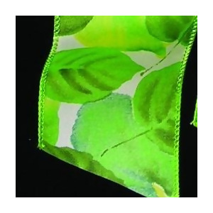 White and Green Foliage Print Wired Craft Ribbon 2...