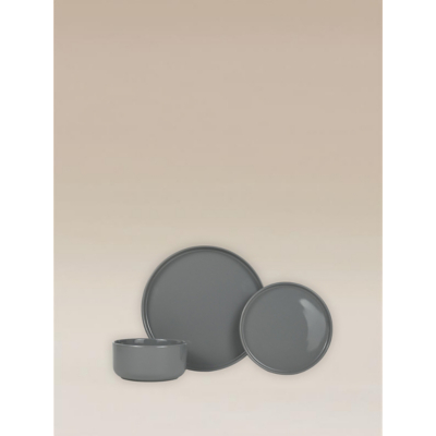 • Grey • 12 piece set • Stoneware • Set contains: 4x dinner plates, 4x side plates, 4x cereal bowls • Dinner plates: 27 cm, side plates: 19 cm, cereal bowls: 14 cm • 7 kg