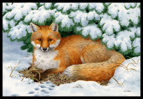 Doormat featuring breed specific Wood Bison artwork. Welcome your guests in style with our Artwork Door Mat, designed to withstand almost any weather condition. This mat, measuring approximately 18 by 27 inches, is held together by durable black binding tape. Its top layer, composed of polyester felt, is dyed with the eye-catching image you see on the mat. A few layers below provide the mat with stability, while its rubber bottom is stamped to help prevent slipping and ensures safety. Our mat works wonderfully as both an indoor or outdoor door mat. For cleaning, simply hose it off with water or use a power washer - no need for any cleaner that produces suds. Avoid scrubbing with a brush, instead, opt for the vacuum on floor setting. Designed manufactured and printed in the USA, this mat is a perfect addition to your porch, outdoor kitchen, entryway, or any indoor space. Its unique design makes it a charming decorative rug that greets your guests and adds a stylish touch to your home decor.