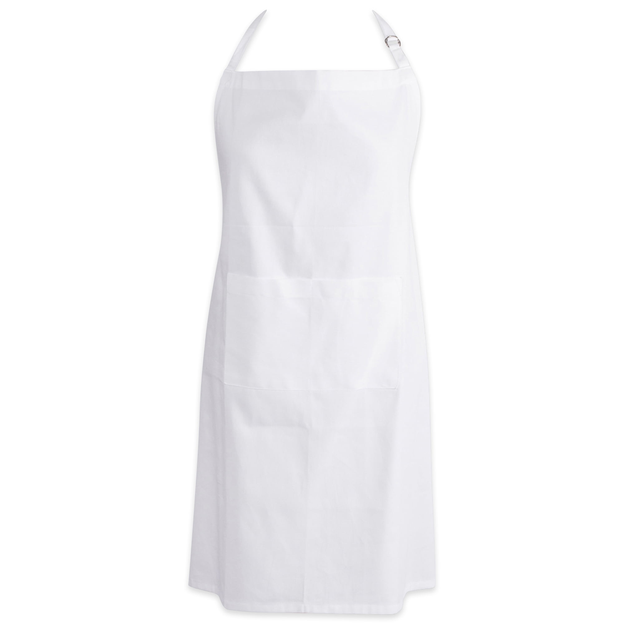 Apron, Bib Style, 27" H x 31" W; 100% Ultra Spun Poly, White, braided nylon tie straps, sewn cloth neckband. These bib style aprons are not just for cooking - they are also great for cleaning, gardening, art projects, and other activities, too!