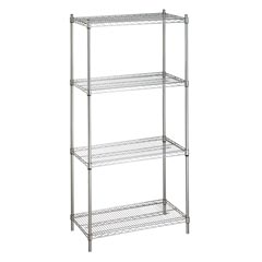 Maximize your storage space with this versatile and practical shelving unit from . The bright, shiny chrome finish adds a touch of style to any room while the four sturdy wire shelves provide ample space for all your storage needs. Each shelf has full-length center supports for added strength and can hold up to 500 lbs. of evenly distributed weight. The shelves are adjustable in 1" increments, making it easy to customize the unit to fit your specific needs. The adjustable feet ensure stability during installation.
