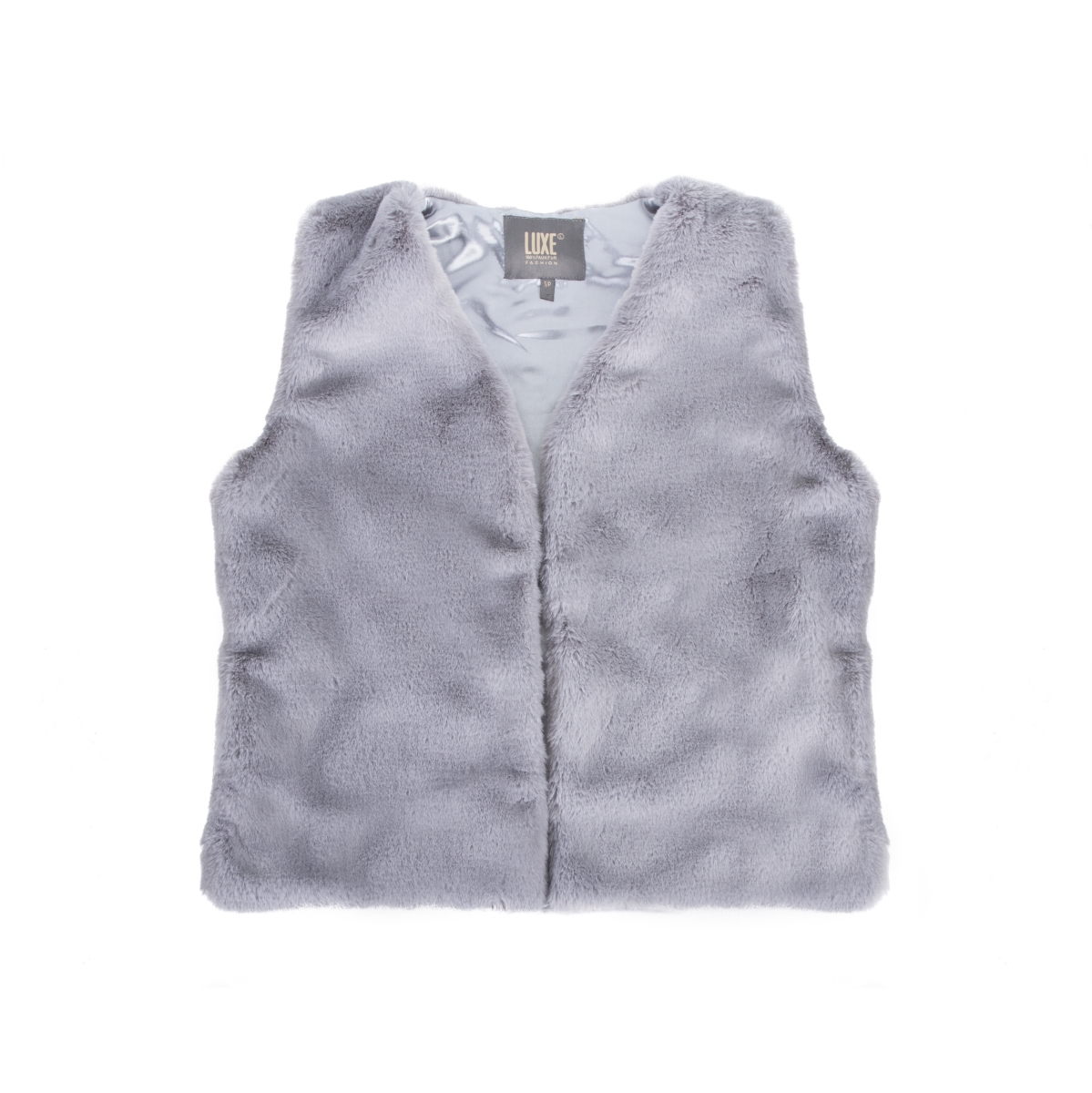 676685047410 Faux Rabbit Fur Vest - Grey - Small