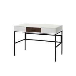 Adorn your study space by incorporating this coveted contemporary style Desk, featuring a high gloss lacquer coated rectangular top and 2 drawers storage to tuck your stationery items. Supported on tubular legs, this desk is constructed from the amalgamation of MDF and metal.