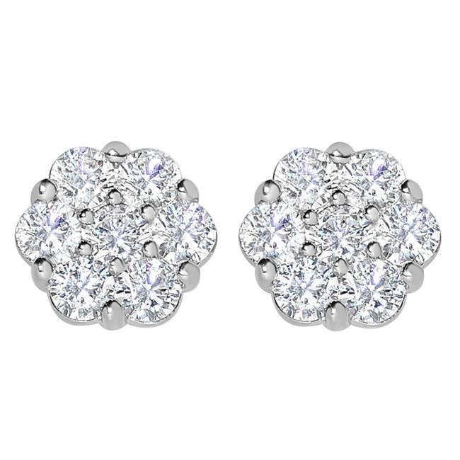 These dazzling little floral studs measure approximately 3/8 inch long and wide. With 14 round-cut cubic zirconia in a shared prong setting, creating the perfect little flowers, these earrings are perfect for special occassions or everyday wear. Crafted of 14-karat white gold, these earrings secure with a butterfly friction closure.