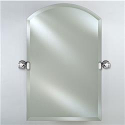 Radiance Frameless Beveled Arch Top Mirror with Decorative Transitional Polished Chrome Tilt Brackets