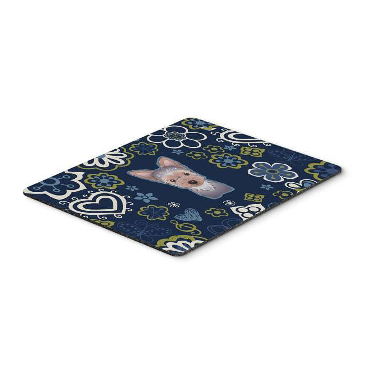 FeaturesBlue Flowers Yorkie Puppy Mouse Pad, Hot Pad or Trivet