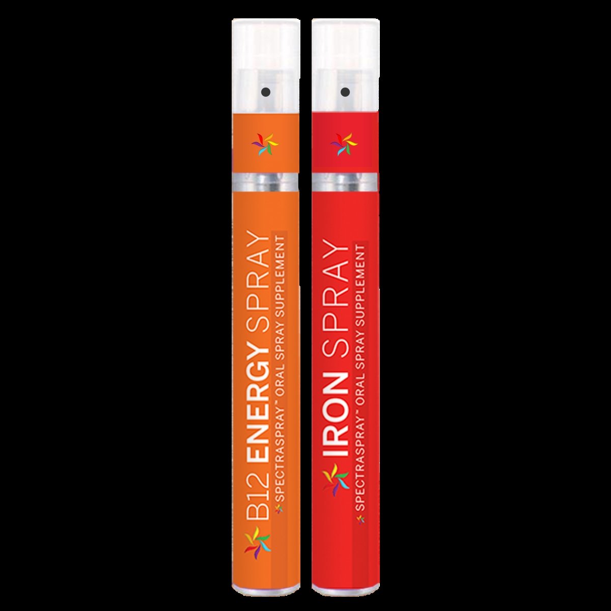 SpectraSpray Iron Power Kit is a vegan oral spray supplement kit that supports healthy iron levels. Combined with B12 to help transport the iron into your cells. Start seizing the day and say goodbye to fatigue. We use the highest food grade Ferrazone brand iron so your body can use it easily. Superior oral absorption gives you fast results. Take it anytime, anywhere with no need for food or water. Be sure to get your Iron blood levels checked by your health professional regularly.