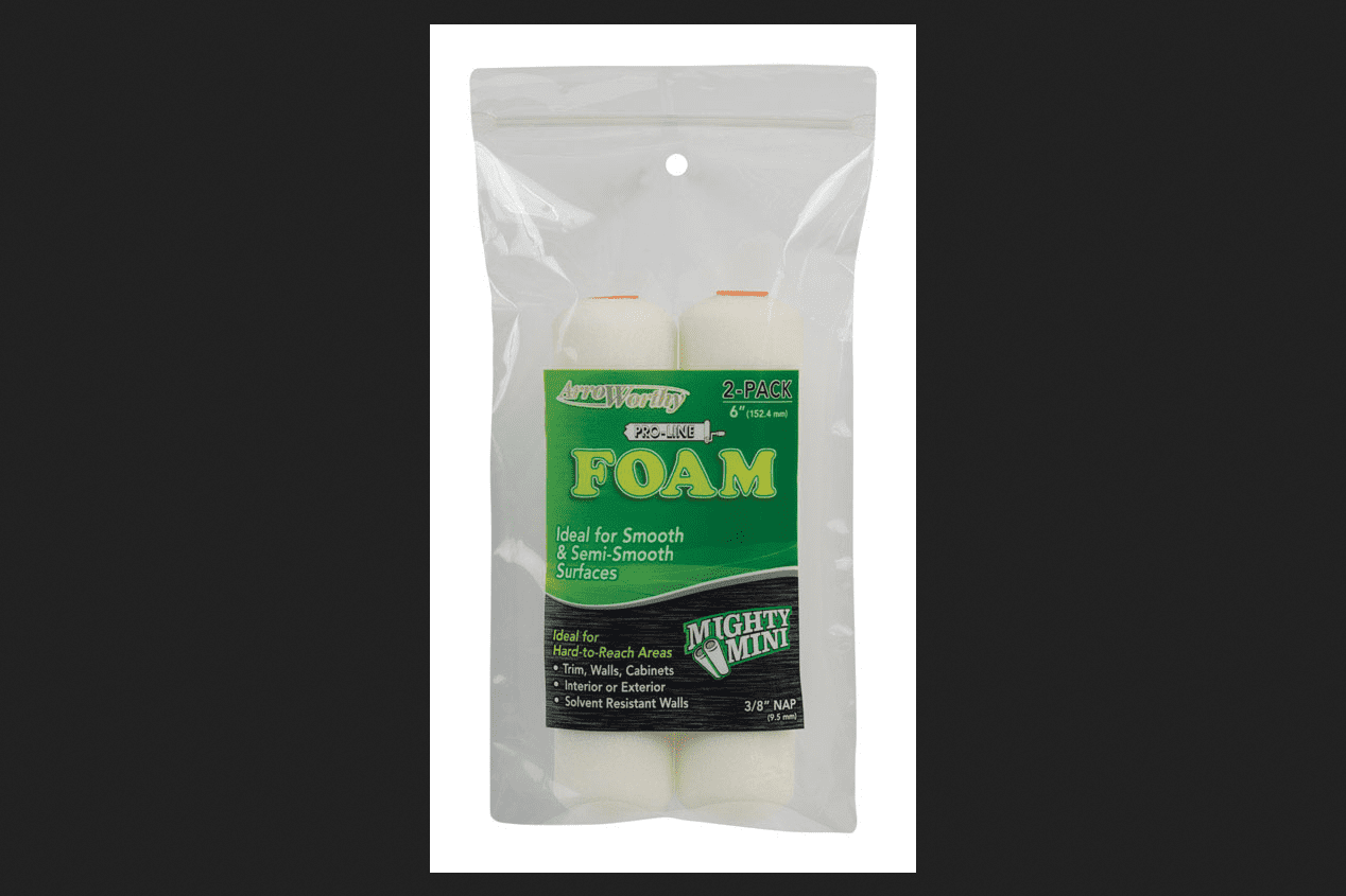 Features- ProLine Foam 0.38 x 6.5 in. Mini Paint Roller Cover for Smooth to Semi-Smooth Surfaces, White - 2 Per Pack - Case of 12