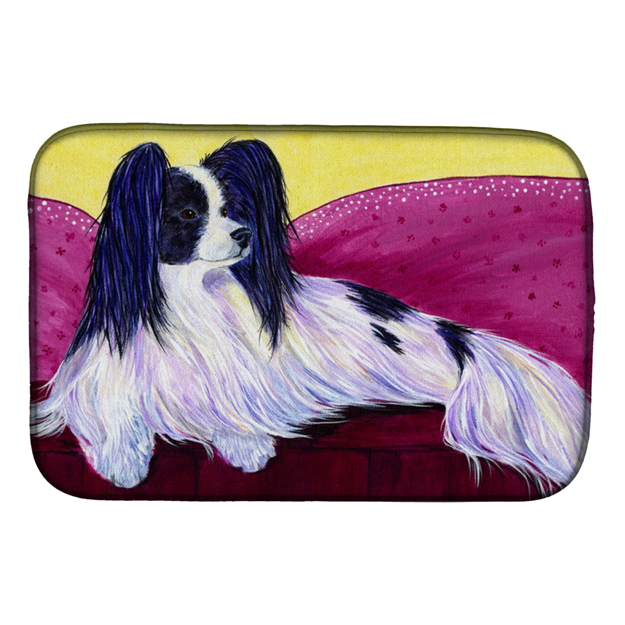 Dish Drying Mat featuring breed specific English Springer Spaniel artwork. Celebrate Christmas with this Christmas Dish Drying Mat. Say goodbye to messy countertops and soggy dish towels with our innovative dish drying mat. Our high-quality dish drying pad is designed to keep your countertops dry while offering a stylish and efficient solution. Whether you're air drying dishes, glasses, stemware, silverware, pots, pans, bottles, or even fruits and vegetables, our dish mat is the perfect choice. The 14 inches x 22 inches size fits most counters and dish drying racks, and the non-slip design ensures stability. Made with water-absorbent polyester and a polyurethane foam insert, our dish drying mat is not only functional but also durable. It's machine washable and printed in the USA for long-lasting use. The beautiful artwork adds flair to your kitchen decor, making it a perfect housewarming gift or present for any occasion. Upgrade your kitchen experience with our absorbent and versatile dish drying mat.