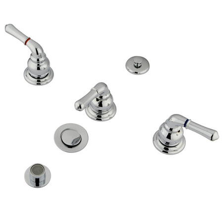 This bidet faucet is complimentary to both traditional and modern designs while providing quality functionality and performance. The three metal lever handles all feature hot and cold indicators. A brass pop-up is included to allow water containment when necessary.