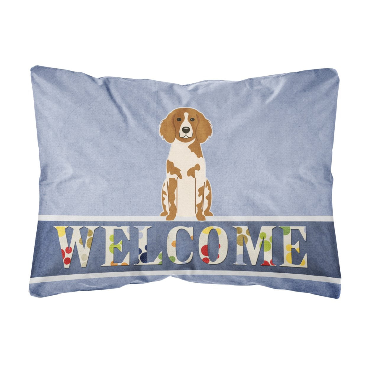 Brittany Spaniel Welcome Canvas Fabric Decorative Pillow