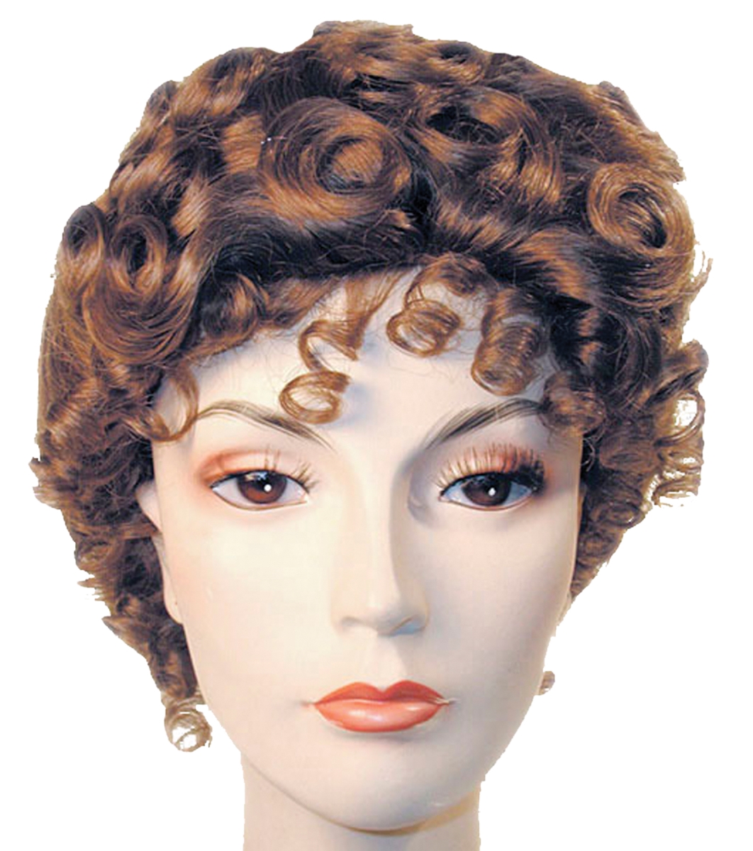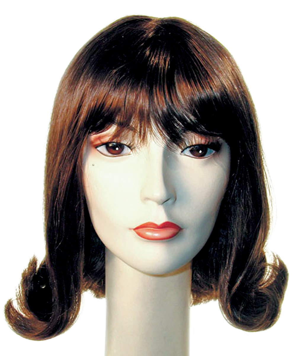 Incredibly beautiful 30" wig, may be worn with or without bangs. May be styled and pinned up at the back. Skin top. Good for use as the funny frog's girlfriend, Mae West, your daughter's favorite doll, bad and good witches, Mona Lisa and many more characters. 4 MED Brown