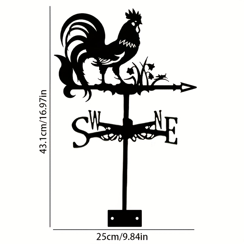 32 in. cast aluminum weathervane. The mast directional letters and arrow are finished with a baked on satin black enamel finish for extra durability. This weathervane is recommended for use on a 24 in. - 30 in. cupola two car garage or medium size home.Features: Adjustable clutch base fits the pitch of most roofs. Hand cast with recycled aluminum. Hand rubbed Swedish iron ornament sits atop the satin black baked enamel weathervane. Approx Height Arrow Length - 32 in. 23.25 in. Arrow Mast and Letter Color - Black. Ornament Color - Swedish Iron. - SKU: MNTGM528