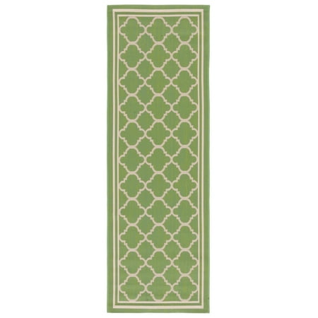SAFAVIEH Courtyard Rug Collection SAFAVIEH Courtyard Alina Geometric Quatrefoil Indoor/Outdoor Runner Rug Green/Beige 2 3 x 14 Courtyard indoor outdoor rugs bring interior design style to busy living spaces inside and out. Courtyard is beautifully styled with patterns from classic to contemporary all draped in fashionable colors and made in sizes and shapes to fit any area. Courtyard rugs are made with enhanced polypropylene in a special sisal weave that achieves intricate designs that are easy to maintain simply clean with a garden hose.