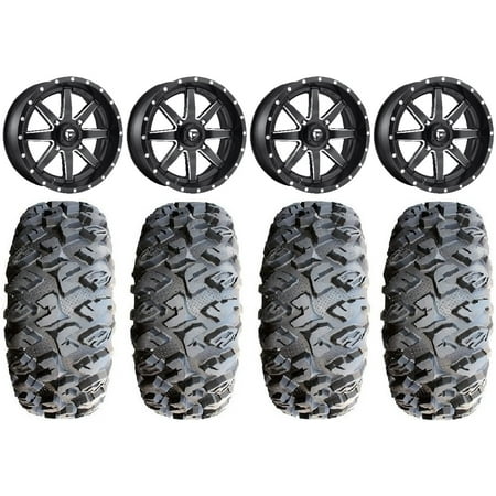 This Wheel and Tire Kit Includes: (4) Fuel Maverick 18x7 ATV/UTV Wheels - Matte Black (4/156) 4+3 [D5381870A544] (4) EFX MotoClaw (8ply) Radial ATV Tires [33x10-18] (1) Gorilla 12mm x 1.5 Lug Kit & Valve Stems - Chrome [K4CS-12150GR] (4) Tires Mount on ATV/UTV Wheels These Wheels will fit the following machines: Arctic Cat/Textron: Wildcat XX (2020-2023) Wildcat XX (2018-2019) Polaris: General 1000 (2016-2023) General 4 1000 (2017-2022) General XP 1000 (2020-2023) General XP 4 1000 (2020-2023) Ranger Crew 900 (2013+) Ranger Crew 900-6 (2015-2016) Ranger Crew Diesel (2015+) Ranger Crew XP 1000 (2017-2023) Ranger Crew XP 570-6 (2016) Ranger Crew XP 900 (2017-2019) Ranger Crew XP 900-5 (2016) Ranger Crew XP 900-6 (2016) Ranger Diesel (2015+) Ranger Diesel HST (2014+) Ranger XP 1000 (2017-2023) Ranger XP 570 (2016) Ranger XP 900 (2013-2019) RZR 4 XP 1000 (2015) RZR Pro XP (2020-2023) RZR PRO XP 4 (2020-2023) RZR RS1 (2018-2022) RZR S 1000 (2015-2021) RZR S 900 (2015-2021) RZR Trail 900 (2021-2023) RZR Trail S 1000 (2021-2023) RZR Trail S 900 (2021-2023) RZR Turbo S (2021-2022) RZR Turbo S 4 (2021-2022) RZR XP (2015-2021) RZR XP 1000 (2014-2024) RZR XP 4 (2016-2021) RZR XP 4 1000 (2014-2024) RZR XP Turbo (2021) Scrambler XP 1000 (2020-2023) Sportsman XP 1000 (2020-2023) Note: Wheels with 6+1 offset will NOT fit on the Polaris Turbo S due to the larger brake caliper FITMENT NOTES: If you have any questions or concerns about fitment please contact us by email or phone BEFORE you order. This listing is for these machine models with a 4x156 Bolt Pattern and 12mmx1.5 Lug Kit. Tire clearance varies by specific machine. Most machines can go at least 1 larger on the tire diameter. Fitment for other machines is available - Browse our wheel and tire kits for UTVs and ATVs. GENERAL NOTES: When you buy a set of 4 wheels OR 4 wheels & tires from us we include a Chrome Lug Kit at no additional charge ($32 Savings). Beware of other companies that do not include lug nuts & valve stems with their wheel sale some wheels require a special type of lug nut to fit into the wheel and your stock lug nuts may not work. If you wish to substitute the Chrome Lug Kit with a Black Lug Kit please contact us prior to ordering to verify availability and to ensure the change is made before the product has