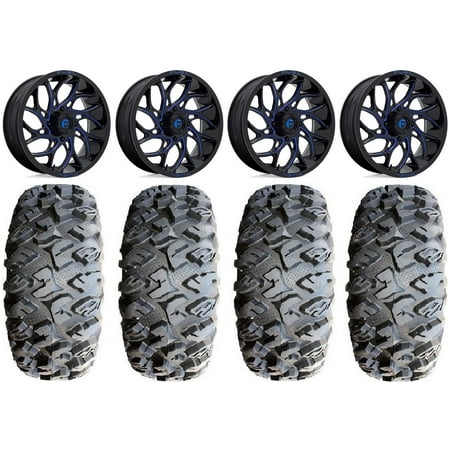 This Wheel and Tire Kit Includes: (4) Fuel Runner 18x7 ATV/UTV Wheels - Gloss Black/Blue (4/156) +13mm [D7781870A544] (4) EFX MotoClaw (8ply) Radial ATV Tires [33x10-18] (1) Gorilla 3/8 x 24 Lug Kit & Valve Stems - Chrome [K4CS-00038GR] (4) Tires Mount on ATV/UTV Wheels These Wheels will fit the following machines: Polaris: ACE 500 (2017-2019) ACE 570 (2016-2019) ACE 900 (2016-2019) Ranger 400 (2010-2014) Ranger 500 (1998-2022) Ranger 570 (2014-2023) Ranger 700 (2006-2009) Ranger 800 (2010-2017) Ranger Crew 500 (2011-2013) Ranger Crew 570 (2014-2023) Ranger Crew 700 (2008-2009) Ranger Crew 800 (2010-2014) Ranger EV (2010-2022) Ranger XP 800 (2010-2013) RZR 4 800 (2010-2014) RZR 570 (2012-2022) RZR 800 (2008-2014) RZR S (2009) RZR S 800 (2009-2014) RZR XP 4 900 (2011-2014) RZR XP 900 (2011-2014) Sportsman 400 (1993-2014) Sportsman 450 (2006-2023) Sportsman 500 (1996-2013) Sportsman 570 (2014-2023) Sportsman ACE (2014-2015) Sportsman ACE 570 (2015) Sportsman X2 500 (2006-2009) Sportsman X2 570 (2015-2021) Sportsman X2 700 (2008) Sportsman X2 800 (2007-2009) FITMENT NOTES: If you have any questions or concerns about fitment please contact us by email or phone BEFORE you order. This listing is for Polaris models with a 4x156 Bolt Pattern and 3/8x24 Lug Kit. Tire clearance varies by specific machine. Most machines can go at least 1 larger on the tire diameter. Fitment for other machines is available - Browse our wheel and tire kits for UTVs and ATVs. GENERAL NOTES: When you buy a set of 4 wheels OR 4 wheels & tires from us we include a Chrome Lug Kit at no additional charge ($32 Savings). Beware of other companies that do not include lug nuts & valve stems with their wheel sale some wheels require a special type of lug nut to fit into the wheel and your stock lug nuts may not work. If you wish to substitute the Chrome Lug Kit with a Black Lug Kit please contact us prior to ordering to verify availability and to ensure the change is made before the product has been packaged/shipped. We stock the majority of what we sell to ensure you get a great price and your order is shipped in a timely fashion. If you are interested in a mounted setup and don t see what you are looking for on our store please let us know. We can always package any tire we offer on any wheel we offer and they will come to your door mounted and ready to bolt on to your machine.