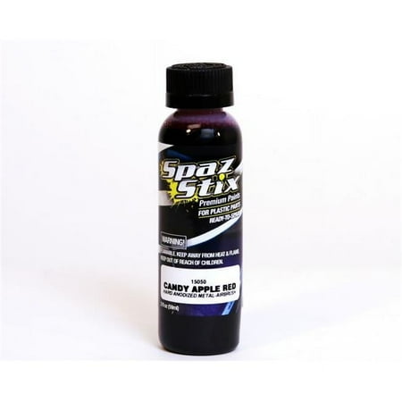 Candy Apple Red Airbrush Ready Paint 2oz Bottle The Spaz Stix Candy color line up is the real deal. The hard anodized metal colors give your R/C vehicle a bold and realistic look - delivering a custom paint job every time. Spaz Stix Candy paint is a translucent (see through) color that when applied correctly will produce eye-popping results. Candy paints spray out very clear and will require several light coats to achieve best results. The color will build in intensity with each coat but at this point the color will be very faint. After achieving an even finish with the Candy paint you MUST use a backing color to make your paint job pop . We recommend the following backer color combinations: White (SZX00200 or SZX00209): Produces the brightest color but the least amount of depth Silver: Produces a bright rich color with some depth Metallic Silver(SZX00300 orSZX00309): Produces the same results as silver but with sparkles . This is our favorite combination! Gold: Produces a darker finished color with the most depth. Ultimate Mirror Chrome (SZX10000 or SZX10009): Produces a unique colored chrome effect. (Be sure to follow the instructions for using Ultimate Mirror Chrome) All Spaz Stix paints are formulated for use on polycarbonate material. Specifically clear bodies for R/C cars and trucks. Be sure to test compatibility when using on other surfaces. If using for on an external application apply the backer as a base coat rather than after the Candy paint. You will also need to apply a quality clear coat (SZX90109) to achieve a high lustre. FEATURES: Enamel based formula Pre