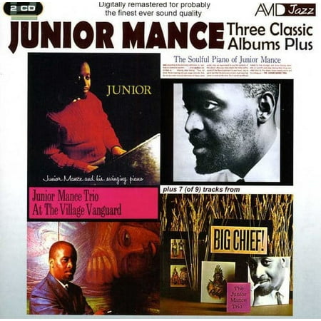 AVID Jazz here presents three classic Junior Mance albums including original LP liner notes on a finely re-mastered and low priced double CD. Junior ; The Soulful Piano of Junior Mance ; At the Village Vanguard and 7 of 9 tracks from Big Chief Welcome to the natural unforced piano stylings of Junior Mance. Recorded in New York in 1959 Junior finds Mance in the company of Lex Humphries on drums and the inimitable Ray Brown on bass. Junior has a new trio for the 1960 date The Soulful Piano of Junior Mance . Joining him are Ben Tucker on bass and Bobby Thomas on drums who form a tightly knit trio as evidenced in the mere 2 ½ hours it took them to record the album! February 1961 saw the club debut of a new Junior Mance Trio at the Village Vanguard. Alongside Junior was bassist Larry Gibbs and drummer Ben Riley both on loan from the bands of Eddie Lockjaw Davis and Johnny Griffin. The Mance Trio having played with all the above musicians as a quintet was able to create it s own strong impression as noted in the original liner notes he may not have a big band but he does have a very big trio . Big Chief recorded in New York in 1961 finds Mance in another trio with Jimmy Rowse on bass and Paul Gusman on drums. On this set the trio play the music of WC Handy and Thelonious Monk. All four albums have been digitally re-mastered.