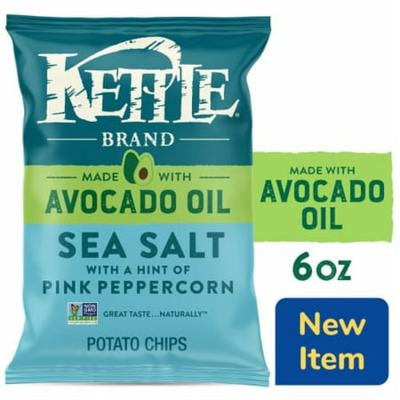 Product Details Open a bag of Kettle Brand Made with Avocado Oil Sea Salt with a Hint of Pink Peppercorn Chips and get a burst of flavor in every bite. Boldy flavorful these Sea Salt with a Hint of Pink Peppercorn kettle chips are kissed with sea salt while a dash of bright and zesty pink peppercorn adds a refreshing twist to every bite. Gluten free and made with non-GMO ingredients. Great taste...naturally Includes one (1) 6-ounce bag of Kettle Brand Made with Avocado Oil Sea Salt with a Hint of Pink Peppercorn Chips Sea Salt with a Hint of Pink Peppercorn flavor has a dash of bright and zest pink peppercorn for a refreshing twist Potato chips made with avocado oil Certified Gluten Free and Non-GMO Project Verified Boldly crafted unmistakably flavorful Ingredients Potatoes Avocado Oil Maltodextrin Sea Salt Sugar Dried Pink Peppercorn Garlic Powder Onion Powder Yeast Extract Natural Flavor Citric Acid. Allergen Info Free from Cereals and Their Derivatives. Disclaimer Actual product packaging and materials may contain additional and/or different ingredient nutritional or proper usage information than the information displayed on our website