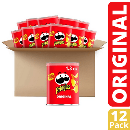 Pringles Potato Crisps Chips Original Flavored Salty Snack Lunch Food Single Serve 1.3 Oz Cans (12 Pack Bulk Boxed And Sealed For Freshness)
