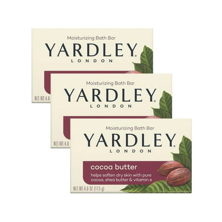 Yardley London Cocoa Butter Moisturizing Bath Bar 120 g / 4.25 oz-Pack of 3 This enticing blend of skin softeneing shea rich cocoa butter and healing vitamin E combines dry skin relief with a creamy scent leaving skin luxuriously soft and beautifully replenished paraben free sulfate free Not tested on animals Indulge your body and mind with the savory scent of Yardley s Moisturizing Cocoa Butter bath bar. Enriched with cocoa butter shea butter and vitamin E this bar helps to soften dry skin and lock in moisture in the most luxurious of ways allowing you to cherish every second of Me Time. Yardley London Cocoa Butter Moisturizing Bath Bar 4.25 oz. This enticing blend of skin softeneing shea rich cocoa butter and healing vitamin E combines dry skin relief with a creamy scent leaving skin luxuriously soft and beautifully replenished. The formula is paraben free sodium lauryl sulfate free and is not tested on animals.