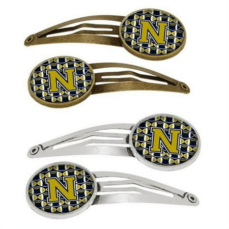 Features Letter N Football Blue & Gold Barrettes Hair Clips Quantitty of 2 each of Antique Silver and quantity of 2 each in Antique Bronze Finished Metal Bobby Pin Base Barrette or Hair Clips with a Clear Crystal Glass Cabochon over a printed aluminum disc The Glass Cabochon amplifies the artwork similiar to a look of a paperweight The weight is very similar to a normal barrette and the look is Fabulous Set of 4Specifications Color: Blue & Gold Dimension: 0.75 H x 0.25 W x 2.25 L Weight: 0.1 lbs - SKU: CRLT100522