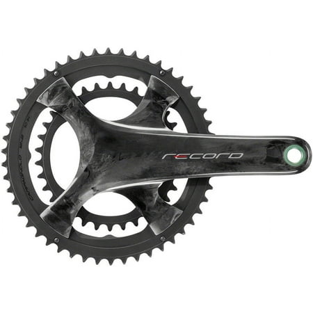 The Record 2x12-Speed crankset shares the same dimensions of previous cranks within a new design. Unidirectional carbon fiber construction guarantees continuity of the entire groupset and features the Ultra-Torque system with steel spindle to ensure perfect transmission of power. The innovative design of the outer chainring ensures faster quieter shifts thanks to the contoured pin and the symmetrical design of the inner chainring teeth provide improved stability with chain crossovers.Features-Unidirectional carbon fiber crank arms steel axle and aluminum chainrings-Compatible with Ultra-Torque bottom brackets sold separately-Eight fixing screws for increased stiffness-Superficial treatment of the chainrings for a longer lifespan-Unchanged Q Factor (145.5mm)Item Specifications-Pedal Spindle:9/16 -BB Included:No-Chainring BCD:146 Campagnolo Asymmetric 112 Campagnolo Asymmetric-Color:Carbon-Defined Color:Black-Crank Intended Use:Road-Crank Length (mm):175mm-Rings:53/39-Drivetrain Speeds:12-Spindle Interface Type:Campagnolo Ultra-Torque-Chainline/Hub Compatibility:130 Hubs 135/142 Road Disc Hubs > 415 mm Chainstay