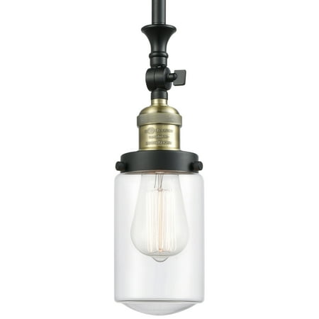 Features: In order to maintain the finish we recommend simply using water and a cheesecloth towel Constructed from steel and cast brass Includes a glass shade Sloped ceiling compatible Dimmable with compatible dimming bulbs Includes (1) 6 and (2) 12 downrods Vintage Edison bulb recommended Made in China UL cUL and ETL listed for installation in damp locations Covered under a 2 year finish and limited lifetime fixture manufacturer warranty Dimensions: Height: 12-3/4 Minimum Height: 47-3/4 Maximum Height: 23-5/16 Width: 4-1/2 Product Weight: 4.5lbs Cord Length: 47-3/4 Wire Length: 47-3/4 Shade Height: 6-1/2 Shade Width: 4-1/2 Canopy Height: 3/4 Canopy Width: 4-1/2 Electrical Specifications: Max Wattage: 100 watts Number of Bulbs: 1 Max Watts Per Bulb: 100 watts Bulb Base: Medium (E26) Bulb Shape: ST18 Voltage: 120 Bulb Included: No