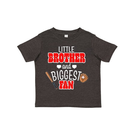 Little Brother and Biggest Fan Baseball Glove and Bat Toddler T-Shirt. Wear this to the game and cheer on your older sibling. A toddler-soft cotton tee in look-at-me big kid colors. 4.5 oz. 100% combed ringspun cotton. White is sewn with 100% cotton thread. Topstitched rib crew neck. Double-needle stitched sleeves and bottom hem. Shoulder-to-shoulder taping. Toddler T-Shirt.