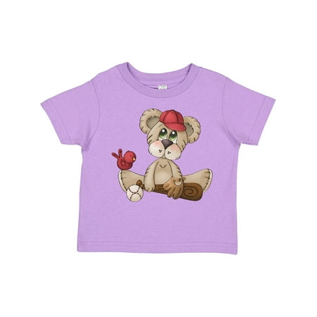 Baseball Teddy Bear with cap red bird baseball and baseball bat Toddler T-Shirt. A toddler-soft cotton tee in look-at-me big kid colors. 4.5 oz. 100% combed ringspun cotton. White is sewn with 100% cotton thread. Topstitched rib crew neck. Double-needle stitched sleeves and bottom hem. Shoulder-to-shoulder taping. Toddler T-Shirt.