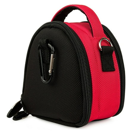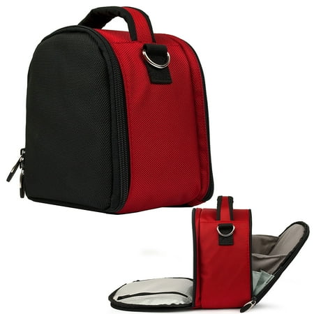 Compact Shoulder Bag for DSLR SLR Cameras GPS Devices This is a camera bag that lets you pack your photography items quickly and keep them organized and easily available. It is designed in a small box format with both front and back zippered pouches. There are two pockets to the case front roomy compartment for the camera or GPS and the back pocket for all accessories like chargers cables storage cards and more. Both pockets are closed with strong zippers the pouch bag is well padded to keep your device safe in case of a fall. You can hold it in your hands with the top handle or use is as a side bag with the detachable shoulder straps. You also get a carabiner lock to atatch the bag to your luggage or backpack.