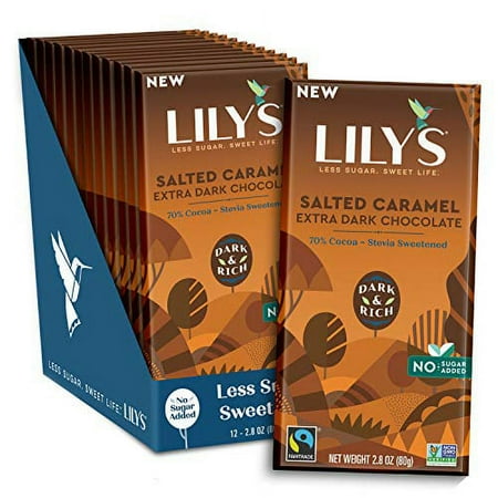 Extra Dark Salted Caramel Chocolate Bar By | Stevia Sweetened No Added Sugar Low-Carb Keto Friendly | 70% Cocoa | Fair Trade Gluten-Free & Non-Gmo | 2.8 Ounce 12-Pack