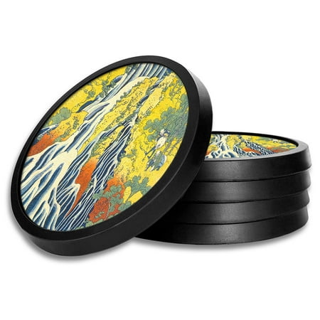 Set of four (4) unique printed silicone and absorbent felt drink coasters that prevent drips puddles and water stains to your fine furniture. Suitable for indoors or outdoors. Works great for hot or cold drinks. Perfect for high humidity locations. Super absorbent removable felt insert absorbs condensation when cold drinks sweat. No more drips on your clothes or furniture from the bottom of the glass when you pick it up. These coasters don t stick to the bottom of the glass when you pick it up. The entire silicone base top and bottom is 100% premium food grade silicone that will not scratch or mar any surface. Wood stone glass plastic granite marble surfaces are all safe. The soft silicone base has a special coating that is velvety smooth to the touch and has non-stick properties that prevents the attraction of dust. Our special coating prevents marks on your fine furniture that other sticky silicone coasters are likely to do. Silicone base and felt insert are both dishwasher safe or can be washed by hand. Colorful images are permanently imprinted on the felt. Sound deadening felt keeps it quiet when setting glass down. Made in the USA by American workers. Perfect Christmas gift. Also makes a great gift for weddings engagements birthdays house warming Mother’s Day or Father’s Day. Add some color to your plain boring drink coasters. 1 488 different colorful designs to choose from. Easily stackable when not in use. Size is 4” in diameter and 0. 4” thick. Printed with colorful image of Hokusai