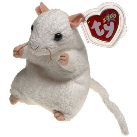 Ty Beanie Babies Cheezer the Mouse Plush 2000 Cheezer is made from a fuzzy white material with peach colored paws and ears. He has black button eyes and brown thread nostrils and whiskers. Poem I hide in holes throughout the day But when night falls I want to play I sneak around and look for cheese So be my friend and help me please! TY