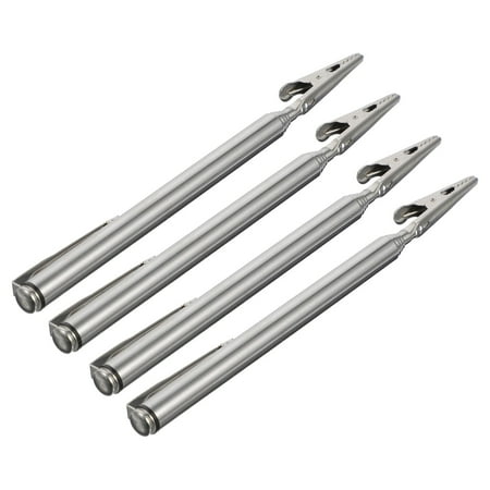 Description It is made of high-quality stainless steel material which is strong environmentally friendly and can serve us for a long time. A set contains 4 alligator wire clips which brings convenience to our daily maintenance operations. This is a set of practical tools you should not miss.-alligator clips stainless Features - Color: Silver. - Material: Stainless steel. - Size: About 15.70X1.00X0.80cm/6.17X0.39X0.31in. - The telescoping alligator clips are made of stainless steel not easy to rust or break can be applied for a long time and many times.-alligator clamps - The alligator clips are convenient to clip on pockets shirts bags files and so on.-alligator clip - These telescoping alligator clips are good for providing a safety buffer for lighting a gas grill or furnace.-adjustable alligator clips - The cleverly designed alligator clip can bring convenience to your repair work.-telescoping alligator clip sticks - A set contains 4 alligator clips which are good quality and .-retractable alligator clip