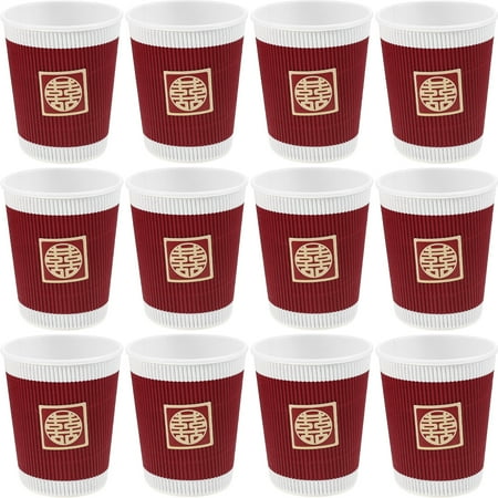 Description Made of paper material these disposable paper cups is safe and sanitary. In Chinese wedding style they are must-have decoration or drinkware in themed parties suitable for wedding party restaurant hotel. Features - Color: Red - Material: Corrugated paper - Size: About 9.50X8.00X8.00cm/3.73X3.14X3.14in - Using thickened and premium paper material these cups are safe to use have certain heat resistance effect. - One time use design can be directly thrown into the trash can after use save your cleaning time. - Generous Chinese wedding theme character design makes these paper cups fit into the party atmosphere better. - It has a wide range of uses can be widely applied in wedding party home receptions restaurants outdoor party and so on. - Compact size light weight stackable design can save much space for you and bring you more convenience.