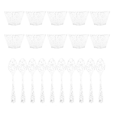 HOMEMAXS Silver Plastic Dessert Cups with Spoons f...
