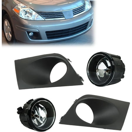 1 Pair of Fog Light Assembly Passenger and Driver Side Replacement for 2007-2011 Versa with Bulbs+Front Bumper Fog Light Covers+Harness Switch Kit Replacement for: for 2007-2011 Versa Specifications: Color: Clear Lens Black Bezel Bulb Size: H11 Bulb Type: Halogen Wattage: 55W Voltage: 12V Fitment Type: Direct Replacement Certifications: DOT SAE Placement on Vehicle: Front Left Right Bulbs Included: Yes Features: Increase safety during heavy rain heavy snow dense fog and night driving. It can be replaced directly which is convenient and simple. Provides a good replacement for broken and old fog lamps. Against fading resistant to water impact long lasting and durable. Package Includes: 2 x fog lights with bulbs 2 x fog light frame 1 x on/off switch 1 x wiring kit (As the Picture Shows) Note: No Installation Guide or Instruction Included Professional Installation is Highly Recommended.