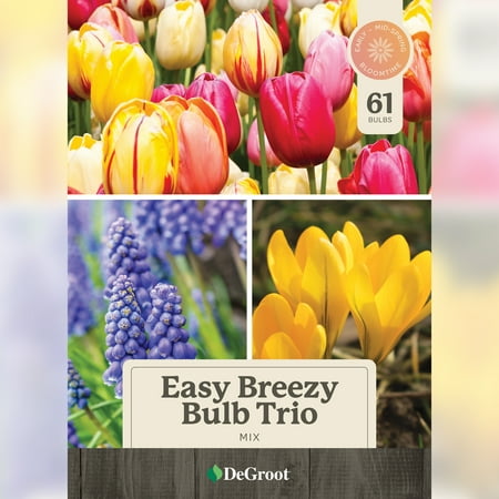 Easy Breezy Bulb Trio adds gorgeous color to your spring garden! Flower bulbs are easy to grow and even a beginner gardener can create the most stunning display. DeGroot has used its over 60 years of flower bulb expertise to create this low maintenance mix of color. This bundle includes a total of 61 flower bulbs including: Muscari Armeniacum Yellow Crocus and Darwin Hybrid tulips. With a stunning array of colors these easy to grow blooms will be a welcome sight come spring. Plant now for spring blooms!