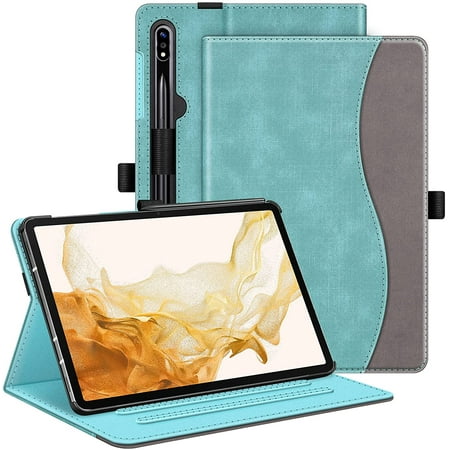 Fintie a quality product within your reach. This case is compatible with Samsung Galaxy Tab S8+/S8 Plus 12.4 inch (Model SM-X800/X806/X808) 2022 Release Samsung Galaxy Tab S7 FE 5G 12.4 inch (Model SM-T730/T733/T736/T738) 2021 Release and Galaxy Tab S7+/S7 Plus 12.4 inch (Model SM-T970/T975/T976/T978) 2020 Release Tablet. Protect your Samsung Galaxy Tab S8 Plus/S7 FE/S7 Plus with this Fintie Multi-Angle Viewing Case at all times! The Case sports a simple and classy design made from premium PU leather and the interior is lined with soft microfiber material that protects your tablet from prints dirt and scratches. Built-in Stand: Three anti-slip stripes propping up the tablet for considerate sturdy standing view angles and typing feature. Front Pocket: A front Document Pocket to store your business cards bank cards notes bills or other personal belongs while on the go. Precise cutouts: All features of the tablet are accessible even with the case on.