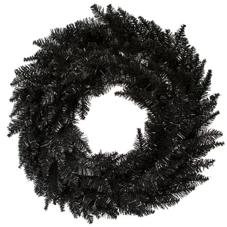 Vickerman 30 Black Fir Artificial Christmas Wreath with 260 PVC Tips. Incorporate bright and modern holiday décor into your space with this beautiful wreath. A great accent for your front door or mantle this wreath comes Unlit features traditional PVC tips giving a lush full look and can be customized with your favorite lights ornaments ribbons or Holiday picks. The wreath measures 30 across the diameter from the end of one tip to another.
