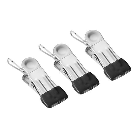 Uxcell 54mm Stainless Steel Hanging Hooks Laundry Clips with Buckle Black 30 Pack [Material] - Made of stainless steel which has a bright surface is not easy to rust and has long-lasting durability. [Non-Slip Design] - Comes with a smooth plastic protective cover on the ends. Not only provide a better grip but also protect your clothes/shoes or other items. [Use for] - Do you worry about your clothes/sheets will fall off with the strong wind? Will your clothes drying rack clip need to replace when used for a long time? Our laundry clips can help solve these problems. [Application] - Widely used in the home kitchen laundry etc. Such as hanging to dry and storage boots clothes hats scarves socks sheets towels dish towels and any other items.