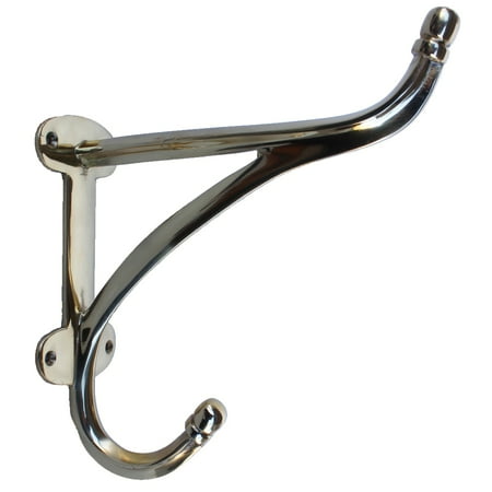 Heavy duty solid Brass wall mount has 2 convenient hook to hanging coats hats bags towels.