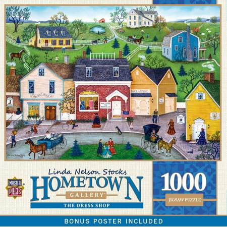 These MasterPieces 19.25 x 26.75 1000pc Hometown Gallery Puzzles are painted by the talented folk artist Linda Nelson Stocks and they feature beautiful vintage scenes that remind us all of simpler times. To reduce their impact on our environment the chipboard used in these puzzles is made of 100% recycled material.