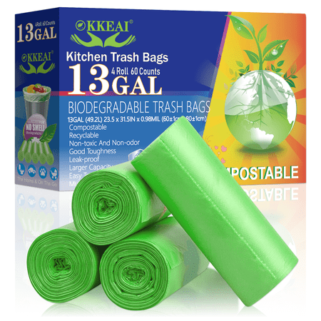 NEW MATERIAL: Our 13 gallon garbage bags are colorless and tasteless and have excellent tear resistance which can be used safely. LEAK PROOF: This 10-13 gallon trash bags are thickened and has an octagonal design at the bottom which will not cause leakage so it also for tall kitchen garbage bags 13 GALLON TRASH BAGS: We have 60 green large garbage bags in total and 50 Liter trash bin bags (L: W): 23.6 * 31.5 inches MULTI PURPOSE: Our kitchen trash bags are very suitable for office living room bedroom bathroom diaper disposal Paper shredder cat litter dog dung car garbage etc.