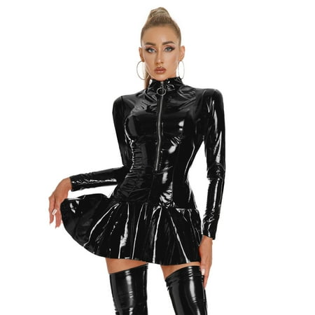 Eandarui Women s Wetlook Leather Mini Dress Mock N...