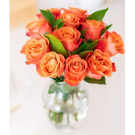 Send your loved ones a bouquet of twelve fresh orange roses from From You Flowers that come in a clear glass vase and make their day. Perfect for any occasion these flowers will be beautiful with any dcor in any room. Blooms may take 2-3 days to open as shown in product photo. Upon arrival remove flowers from wrap trim ends of stems at an angle under running water and place them in a vase with fresh water and the included flower food.