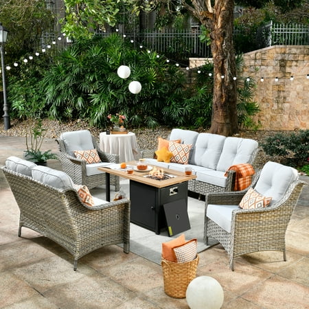 HOOOWOOO stylish rattan wicker furniture gives your garden a new look. Our patio rattan set made of premium steel and rattan that are ensured to last long. The thickly cushioned patio sofa set chairs for maximum comfort and excellent seating experience. This set of rattan furniture can be placed in your courtyard balcony and poolside to have a gathering or conversation with drinks.