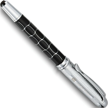 Charles-Hubert Black Croco Enameled Rollerball Pen This Expertly Designed Gift: Writing Instruments & Pen Cases are Manufactured with Percision in the Country of CHINA Made of Non Metal and featuring these Amazing Attributes; Chrome-plated. List of Specifications: Length of Item:5.5 in; Material: Accents:Enamel; Material: Primary:Metal; Warranty:Limited Lifetime Warranty; Item Weight U/M:lbs; Packaging:Gift Boxed; Product Type:Gift; Sold By Unit:Each; Material: Primary - Color:Black; Gift Type:Writing Instruments & Pen Cases.